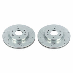 Power Stop drilled and slotted rotors provide a bolt-on upgrade for improved brake cooling and performance. Precision cross-drilled for maximum cooling and maximum performance during extreme conditions; rounded slots sweep away gasses, dust, and moisture to keep a clean friction contact patch on the rotor surface. Silver zinc dichromate plating resists rust and corrosion. With a direct OE fit, there are no special modifications needed.
