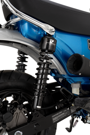 Designed for performance at an affordable price, 412 Series shocks for the Honda Dax 125 enhance the feeling of nostalgia on an already iconic machine. The double wall body construction with a nitrogen charge uses velocity sensitive valving to give riders a smooth, consistent feel throughout the entire shock stroke. Coupled with a cam style preload adjuster and progressive rate spring, 412 Series shocks allow anyone to dial in their preload adjustment and cruise down the road of vintage styling without giving up modern performance.