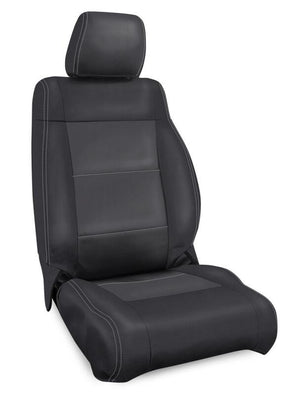 PRP's Seat Covers for the Jeep Wrangler JK bring a whole new look to your interior. These covers have been expertly crafted to fit perfectly over your factory JK seats providing an OEM fit and finish. Install yourself or through a certified PRP installer. Made from durable marine-grade vinyl, they can handle the abuse from both on and off-road environments. The covers install over your stock upholstery, and are side impact airbag compatible.