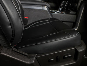 PRP’s Front Seat Covers for the 2012-2014 Ford Raptor give you the opportunity to create a whole new custom look for your truck. These seat covers are a great addition to your Raptor and the perfect option to protect your stock upholstery. Whether you use it as a daily driver or ripping around the dunes or trails, you’ll get the protection and customization that only PRP Seat Covers can offer. Our Ford Raptor Seat Covers have been expertly crafted to fit perfectly over your factory front seats with an OEM fit and finish. Install them yourself or through a certified PRP installer. Made from durable Vinyl material so they can handle the abuse from daily use and both on and off-road environments. Our seat covers are designed to install over your stock upholstery and are side-impact airbag compatible. Sold as a pair. Dont forget to complete your whole interior with our matching Rear Seat and Center Console Covers. FITMENT: 2012-2014 Ford Raptor Regular Cab, Super Cab, and Super Crew Cab Models