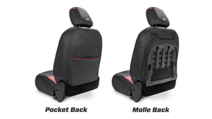 PRP's Seat Covers for the Jeep Wrangler JL bring a whole new look to your interior. These covers have been expertly crafted to fit perfectly over your factory JL seats providing an OEM fit and finish. Install yourself or through a certified PRP installer. Made from durable marine-grade vinyl, they can handle the abuse from both on and off-road environments. The covers install over your stock upholstery, and are side impact airbag compatible. Two different models are available depending on your vehicle: for those have the Rubicon Edition that feature the Plastic Molle seat back, and the Pocket seat back for all other Wrangler Editions.