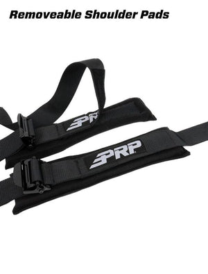 PRP’s new and improved 5.2 Harness includes new features to provide more comfort and safety while off road. Whether you’re racing, riding the dunes, or crawling the Rubicon – this harness will hold you in tight. This 5 point harness with 2" belts has thick pads for comfort, all black hardware for style and EZ adjusters on the shoulders. The EZ adjusters allow you to adjust your shoulder straps quickly and even if they are dirty or muddy. Other new features include our thick shoulder pads for comfort, that are now removeable so you can easily clean them, or use this harness with any neck restraint system. The Bolt-In Tabs on the Shoulders and Lap can be bolted up to almost any vehicle. They can also now be easily removed, so you can swap in Clip-in Tabs if desired. Improve the safety and comfort of your ride! SFI 16.1 certified for racing. Warning Proper installation and consistent use of the 5 point harness restraint system is critical to your safety in event of accident. To reduce risk of serious injury or death: Follow vehicle manufacturers, and PRP Seats instructions and safety messages during installation and use of this product. Use all belts provided. Secure lap belt first; low and snug across hips. Sternum strap tight at chest line (min. 4” below neck). Adjust remaining straps per instructions and confirm fitment restrains user & provides safe clearance from wheel, dash, roll cage, etc. Inspect all components of the 5 point harness restraint system regularly & replace as indicated by accident, wear or abrasion. Replace no later than 2 years from date on SFI 16.1 tag. This 5 point competition restraint system is intended for UTV or other off-road vehicle-not replacement for FMVSS 209 restraints. Never use with child car seats or boosters.