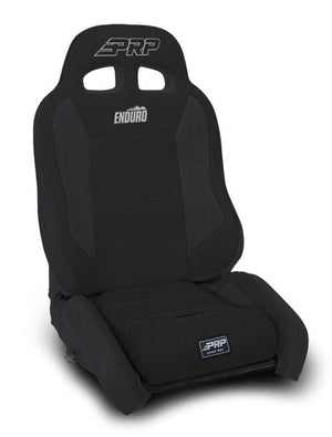 Add comfort and containment to your Jeep, Truck, or Buggy with the EnduroCrawl Reclining Suspension Seat from the Enduro Elite Series, the newest line of Reclining Suspension Seats from PRP. Featuring updated styling and a dual slot headrest for harnesses, the EnduroCrawl is designed to replace stock seats in a Jeep Wrangler, Jeep XJ, Ford Ranger, Trucks, or Buggy for a significant improvement to your enjoyment, comfort, and containment off-road. Featuring medium bolsters on the bottom and back of the seat, the EnduroCrawl provides the most containment for serious off-roading while retaining the ability to recline the seat. The bottom features higher sides to keep your legs locked in when bouncing around and the back lower section features a medium bolster at your sides that help to keep you secure. While the wider top section opens up, making it more comfortable for larger riders or those with broad shoulders. A removable, dual-layered seat cushion means the EnduroCrawl offers better leg support and extended comfort. The vinyl-coated nylon suspension liner and dual-density foam decrease the impact on the body and reduce body fatigue after a long day in the dirt or dunes. EnduoCrawl Reclining Suspension Seat is great for serious off-roaders who want to be held tight on the trails, with the additional comfort and adjustability of a reclining suspension seat. The EnduroCrawl reclines completely and inclines forward enough for access to the rear seats. The bottom tabs easily bolt to PRP’s series of mounts for Jeeps, Broncos, Ford Rangers, and more. The seat features Suede Center, Vinyl Back and Vinyl Bands.