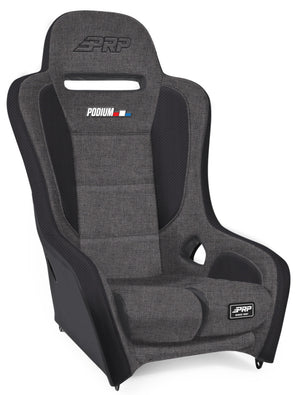 Built for Off-Road! The NEW Podium Elite Series suspension seat features a redesigned look, added lateral leg support for better containment, a thinner split bottom cushion allowing for left leg support while the right leg is extended, and larger harness openings for easier adjustments. Designed to remain comfortable after several hours in race conditions, the Podium Elite Series is our top suspension off-road race seat. This seat features a Tweed Center, with Vinyl Back and Band.