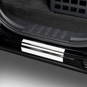Enhance your Ford's appearance with a touch of premium elegance using these Officially Licensed Door sills. These meticulously crafted door sill trim plates are constructed from high-quality polished T-304 stainless steel, delivering a stunning mirror-like finish that adds a luxurious touch to your vehicle.Featuring Laser-etched logos like Super Duty, Ranger, F-150, Maverick, or Bronco, Custom-crafted to flawlessly fits your Ford, these door sills seamlessly integrate, giving your vehicle the high-end, expensive appearance that it deserves.The Installation is a breeze, thanks to the pre-applied automotive-grade 3M tape. Simply peel, align, and stick! Since each product is designed and manufactured in the USA, they are backed by the NeveRust limited lifetime warranty, guaranteeing exceptional durability and long-lasting performance.Protect your Ford's door sill from potential damage while enhancing its overall aesthetic appeal by adding a touch of refinement that your Ford deserves!