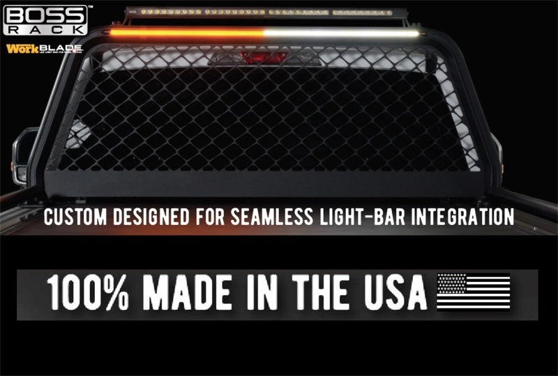 The Putco Boss Rack™ is constructed of top-grade aluminum to provide a product that will serve your needs for years to come. This is a all aluminum headache truck bed cab rack is so durable, so tough, it will likely outlast the truck you mount it on! This is the prefer rack for fleets and contractors. The NeveRust lifetime warranty along with the dual t-slot channel outer design make adding additional cab rack accessories super easy. The outer head rack with dual t-slots built in to easily mount Putco t-slot rack accessories from strobe lights, light bar mounts and more. Putco's one of a kind Boss Rack™ was designed with custom extrusions for seamless and perfect light bar mounts. Compared to steel racks, this aluminum rack will look great for years and is made for contractors. Putco's Boss Rack delivers premium quality protection for your truck while turning heads with its unparalleled performance. Order the rack with no drill mounting hardware or get it with the optional work light amber & white LED lights or Hornet roof top amber & white strobe lights.