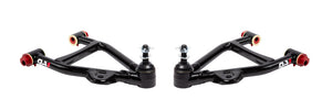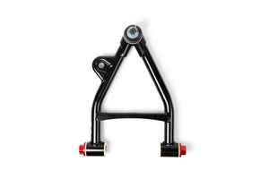 Product Overview QA1's Mustang race control arms are the perfect combination of performance and style, offering lightweight, durable construction and a clean, sleek design that will enhance the look of your Mustang. On-The-Car Adjustability QA1's unique eccentric adjustment sleeve allows for precise tuning of camber and up-to a 1/2” of track width adjustment without removing from the car, a feature not found in other control arms.Forged Ball Joint Housings A unique feature of the QA1 control arm is the forged ball joint housing. This provides exceptional reliability, strength, and durability. The low-friction ball joint ensures smooth operation, and the rebuildable, lightweight, and greaseable design makes maintenance a breeze.Ultra-Low-Friction Composite Bushings QA1’s ultra-low-friction composite bushings are stiffer and provide bind-free movement, providing enhanced stability and control. They also allow for freer movement, resulting in a more responsive ride.Additionally, these bushings are much more durable than rubber bushings, making them highly resistant to wear and tear. Finally, composite bushings are greasable.for long life.Lightweight Design QA1 street control arms were designed to be the strongest, best looking control arms on the market. And weighing in at less than 8lbs per arm, this makes them among the lightest of street worthy control arms available.Easy, Bolt-In InstallationOur commitment to thoughtful product design is evident in every product we produce, to deliver the highest level of performance at the track, while ensuring trouble-free compatibility.Made in the USAQA1 control arms are proudly made in Lakeville, Minnesota. Fitment NotesControl arms allow +/- 1/8” adjustment from factory lengthCompatible with factory and QA1 K-membersCoilover struts required, not compatible with factory coil springsFox Body control arms include adapter for SN95 spindles