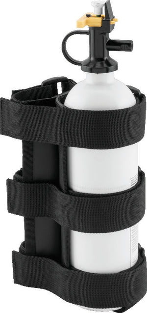 Be prepared in the event of a fire. The recommended first accessory for new UTV owners is a fire extinguisher. The second accessory" A way to attach it! This holder easily and safely attaches the fire extinguisher to ATVs and UTV roll cages with adjustable hook-and-loop closures. Secure, tight fit on multiple sizes of fire extinguishers. Before riding, check local state or county laws for fire extinguisher display laws.
