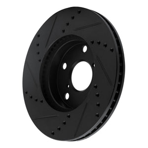 R1 01-05 Toyota RAV4 Front Right Drilled & Slotted Black Brake Rotor - 633-76125R