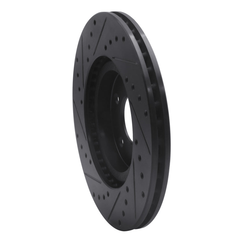 R1 01-10 Chrysler PT Cruiser Front Right Drilled & Slotted Black Brake Rotor - 633-39012R