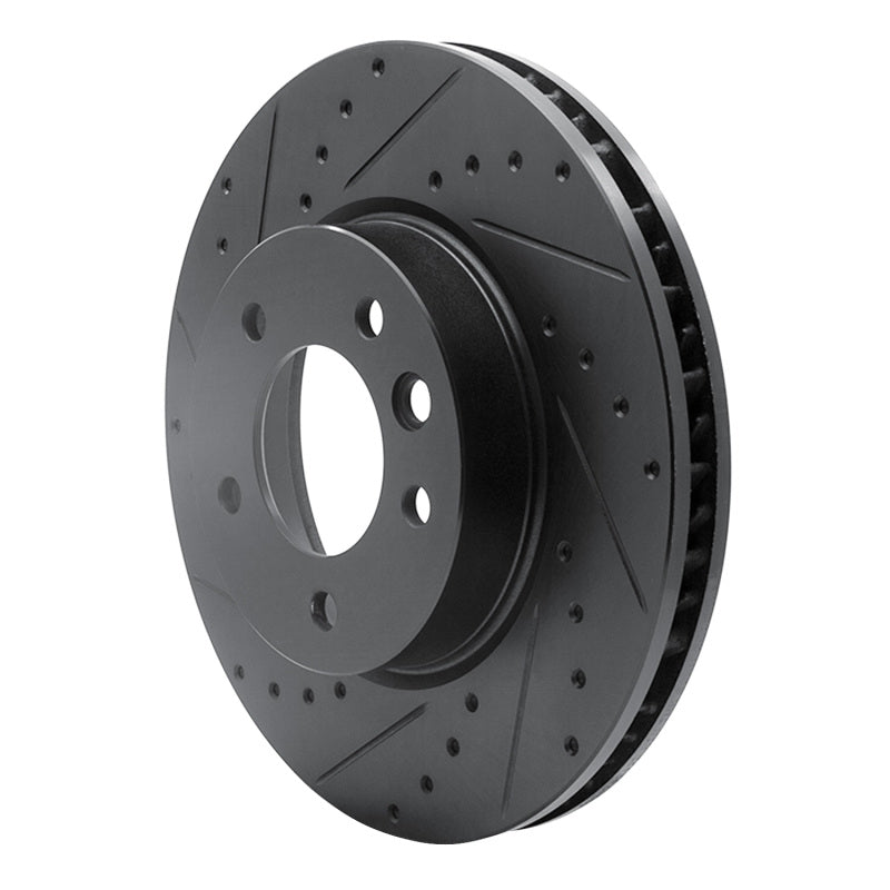 R1 03-18 Porsche Cayenne Right Front Drilled & Slotted Black Brake Rotor - 633-74049D