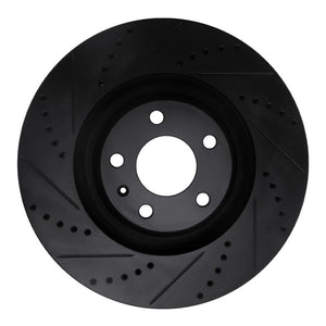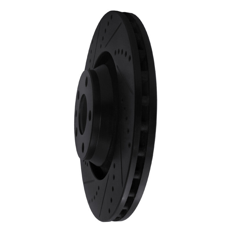 R1 05-11 Audi A6 Quattro Front Left Drilled & Slotted Black Brake Rotor - 633-73038L