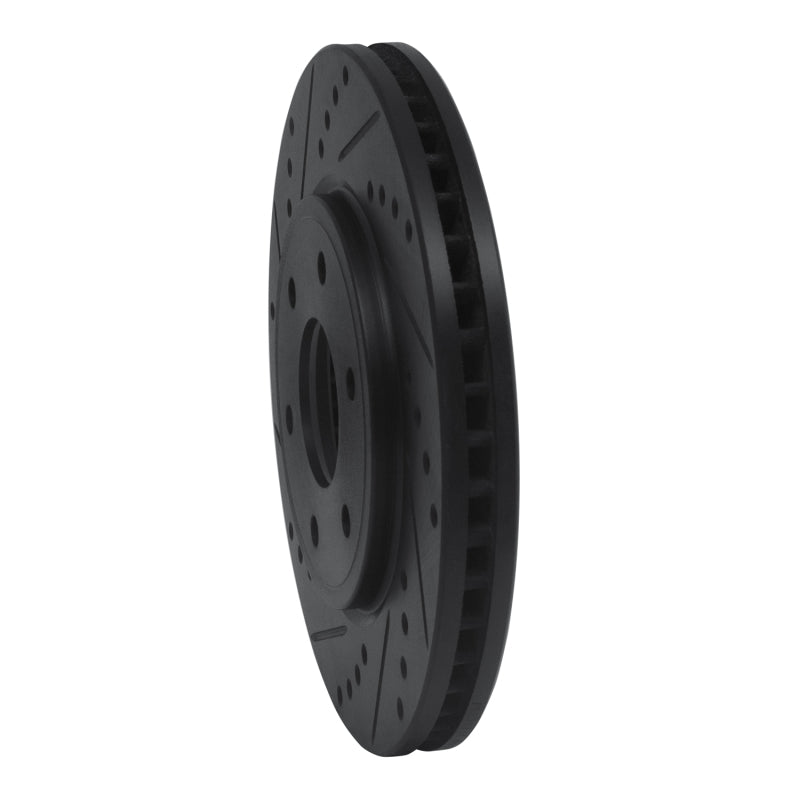 R1 05-21 Nissan Frontier Front Left Drilled & Slotted Black Brake Rotor - 633-67095L