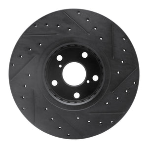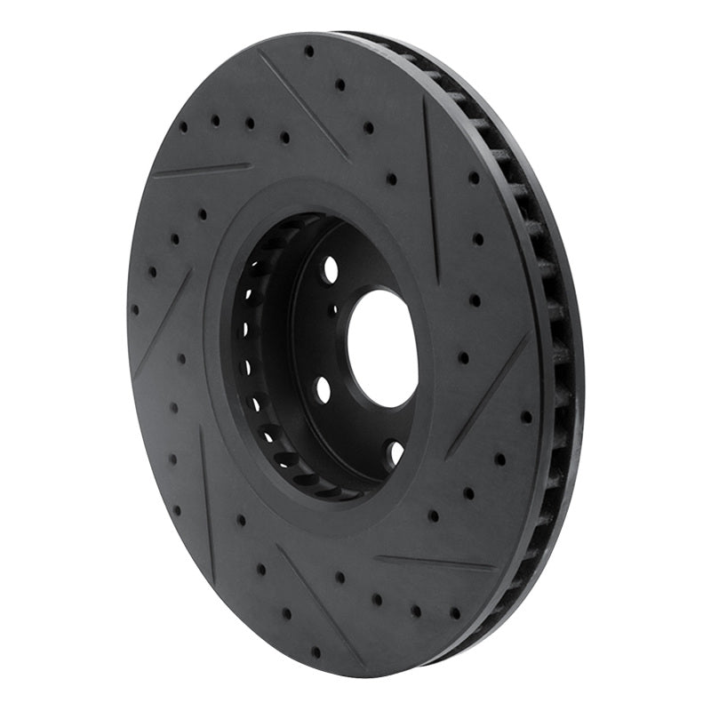 R1 07-11 Lexus GS350 Left Front Drilled & Slotted Black Brake Rotor - 633-75023D