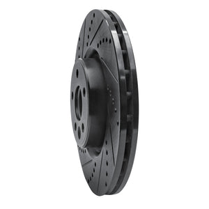 R1 07-16 Volvo S80 Front Left Drilled & Slotted Black Brake Rotor - 633-27036L