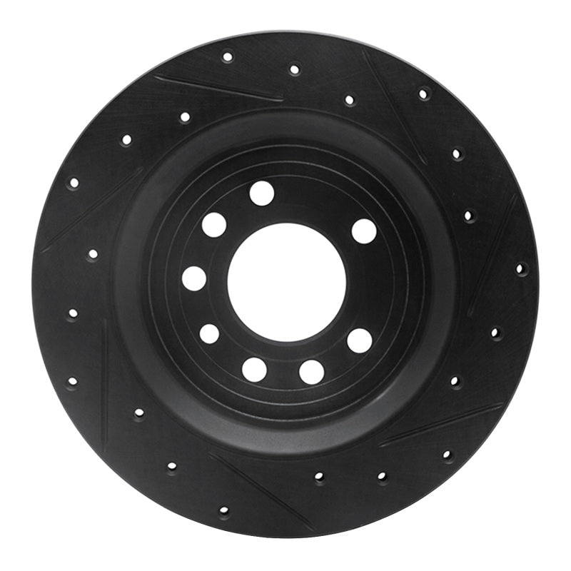 R1 08-11 Saab 9-3 Rear Left Drilled & Slotted Black Brake Rotor - 633-65020L