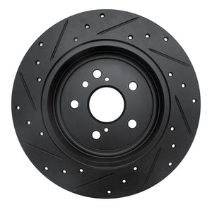 R1 08-13 Toyota Highlander Rear Right Drilled & Slotted Black Brake Rotor - 633-76139R