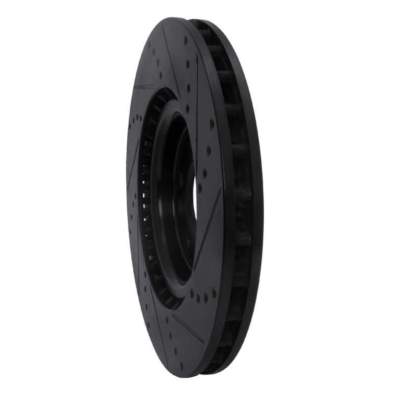 R1 08-15 Mitsubishi Lancer Front Left Drilled & Slotted Black Brake Rotor - 633-72043L