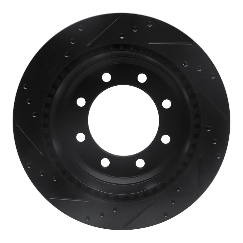 R1 08-25 Ford E-150 Rear Right Drilled & Slotted Black Brake Rotor - 633-54208R
