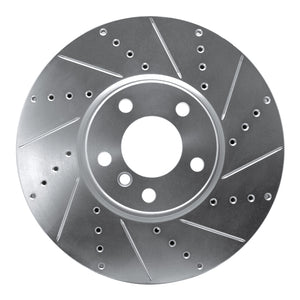 R1 10-18 BMW 535I GT Left Front Drilled & Slotted Silver Brake Rotor - 631-31099D