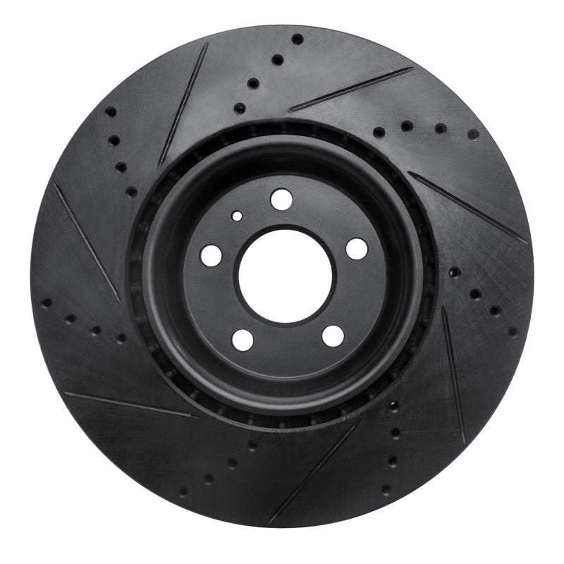 R1 12-20 Audi A7 Quattro Front Right Drilled & Slotted Black Brake Rotor - 633-73067R