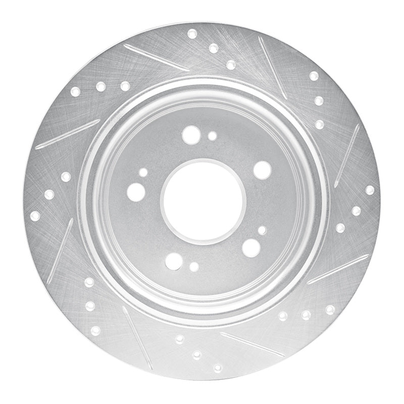 R1 14-20 Acura RLX Rear Left Drilled & Slotted Silver Brake Rotor - 631-58024L