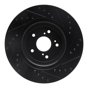 R1 14-20 Acura TLX Front Left Drilled & Slotted Black Brake Rotor - 633-58026L