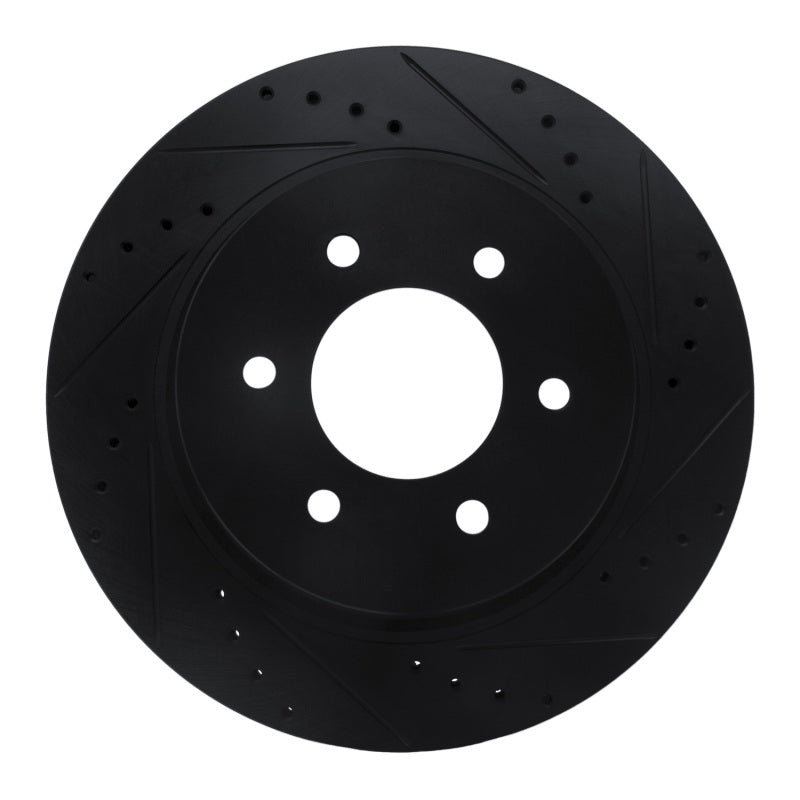 R1 16-24 Nissan Titan XD Front Right Drilled & Slotted Black Brake Rotor - 633-67108R
