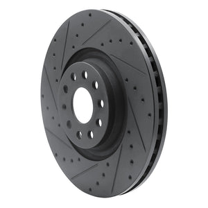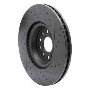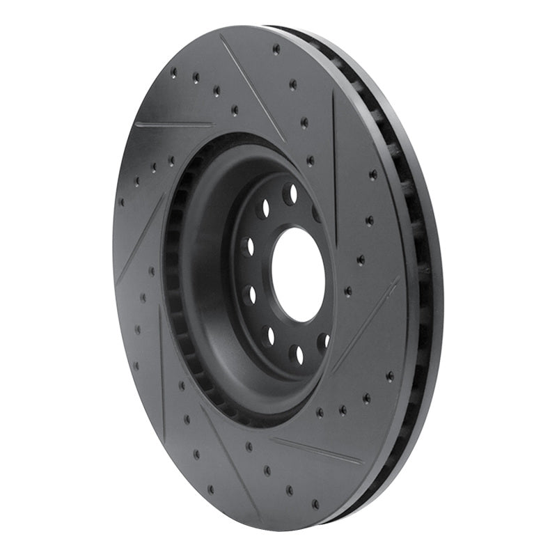 R1 2022+ Volkswagen GTI Mk 8 Front Left Drilled & Slotted Black Brake Rotor - 633-74034L