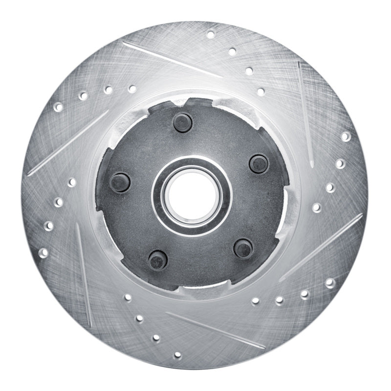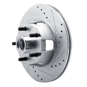 R1 65-67 Ford Ranchero Front Right Drilled & Slotted Silver Brake Rotor - 631-54040R