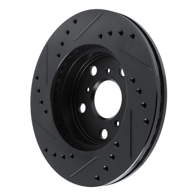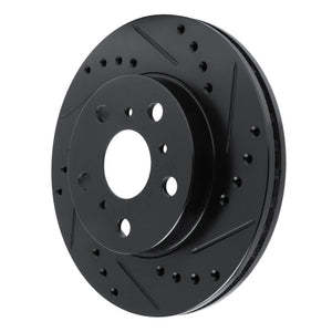 R1 83-86 Toyota Camry Front Right Drilled & Slotted Black Brake Rotor - 633-76016R