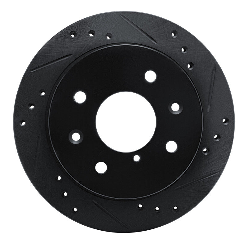 R1 84-85 Mazda RX-7 Rear Right Drilled & Slotted Black Brake Rotor - 633-80008R