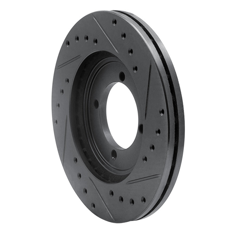R1 84-90 Dodge COLT Front Left Drilled & Slotted Black Brake Rotor - 633-72009L