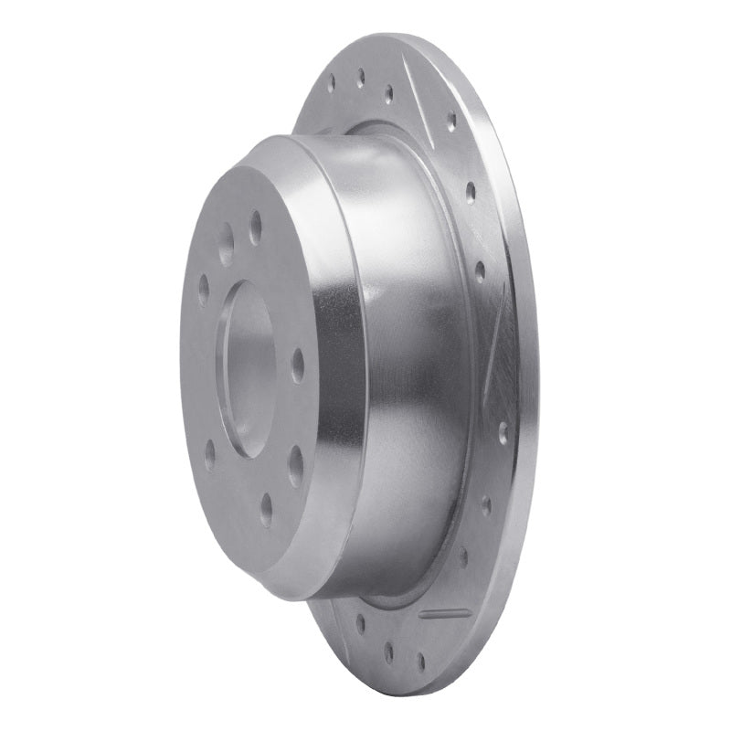 R1 86-89 Jaguar VanDEN PLAS Rear Right Drilled & Slotted Silver Brake Rotor - 631-20004R