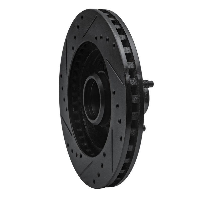 R1 87-88 Ford Thunderbird Front Right Drilled & Slotted Black Brake Rotor - 633-54028R