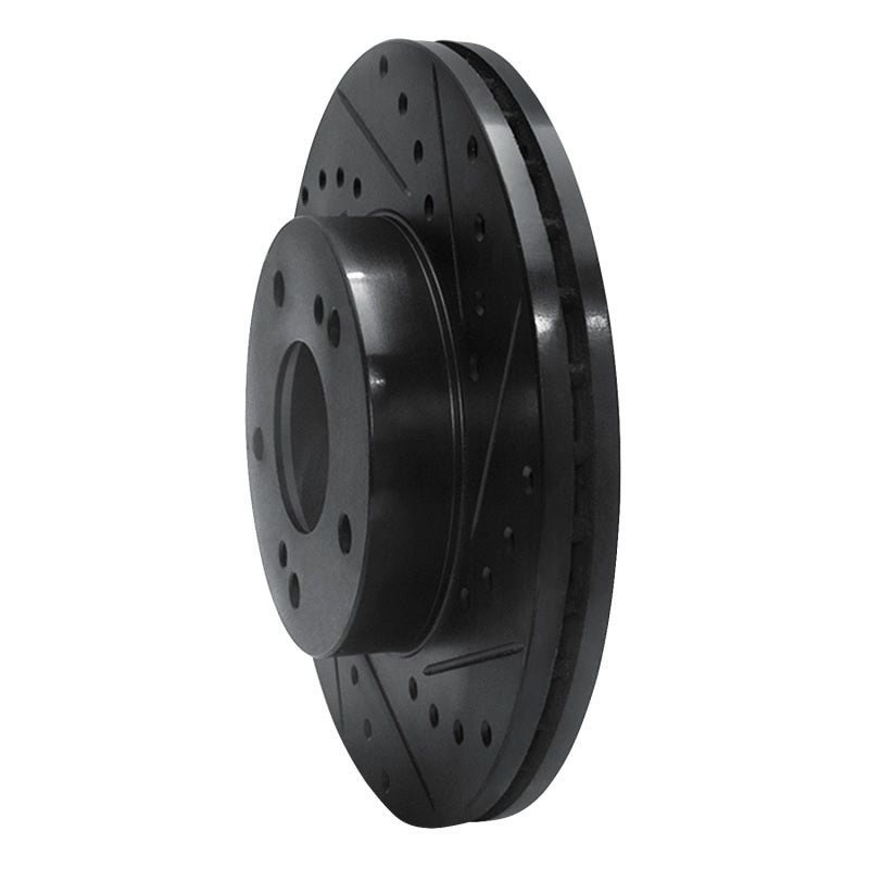 R1 87-89 Nissan 300ZX Turbo Front Right Drilled & Slotted Black Brake Rotor - 633-67025R