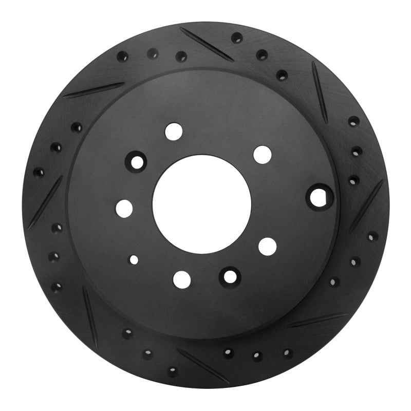 R1 92-06 Mazda 929 Rear Right Drilled & Slotted Black Brake Rotor - 633-80061R