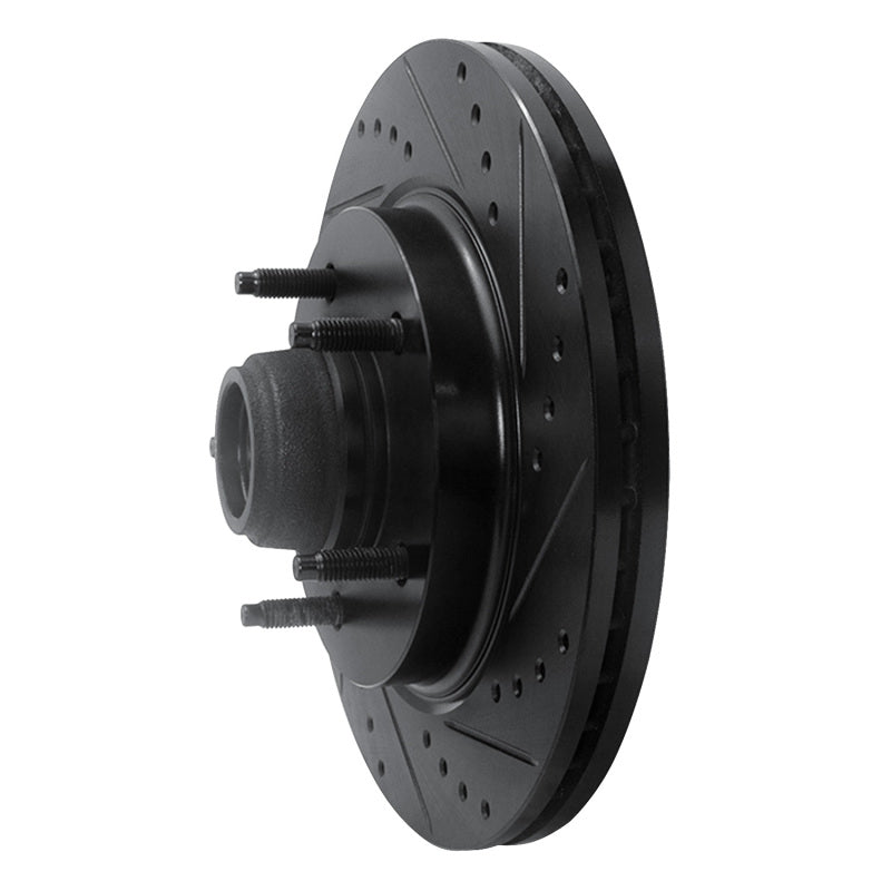 R1 97-99 Ford F-150 RWD Front Right Drilled & Slotted Black Brake Rotor - 633-54146R