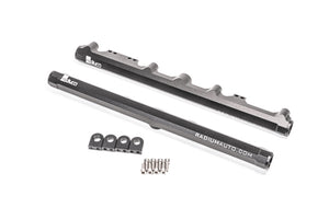 CNC machined fuel rail for the Toyota 2UZ-FE engine. Each fuel rail is equipped with three 8AN ORB ports, which can be used for plumbing and fuel accessories. Bolts directly to engine without any permanent modifications. Compatible with stock injectors or any aftermarket injectors with the same fitment.