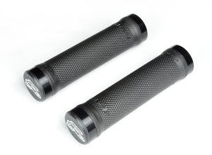 Renthal Lock-On grips feature CNC aluminium locking collars, permanently integrated with the central core, giving the ultimate all-weather security on the handlebar. The integrated construction eliminates any movement between the grip section and the collars, which could otherwise develop over time. The new and unique Ultra Tacky™ compound constantly produces and renews a sticky surface coating. The resulting adhesive grip surface massively increases control and reduces fatigue.