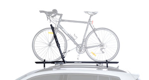 The Hybrid Bike vehiclerier features an upright locking fork designed to safely transport your bike. Without having to remove the front wheel, the Hybrid Bike vehiclerier features universal mounting hardware that allows the Bike vehiclerier to be installed on the majority of roof rack cross bars. Simply secure the front fork and wheel with the ratchet arm, tighten the wheel straps and drive away with confidence. Installation Instructions