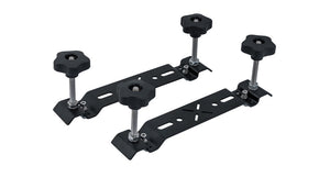The flat bracket to suit Maxtrax and Tred recovery tracks fits onto the Pioneer with a resultant set of 4 location bolts/pins protruding upright and tightened via the set of knobs securing the recovery tracks in a set and firm position. The Pioneer Recovery Tracks Flat Bracket is easily installed and made from corrosion resistant black powder coated steel. Installation on the Pioneer roof rack keeps the dirt and mud outside your vehicle after use. Suitable for all models of Pioneer, up to 4 x Maxtrax or 2 x Tred can be stacked, utilizing this bracket.