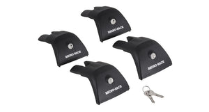 We have updated our popular range of flush legs to a new low and high version. Now locking. Now fits the VA bar extrusion. The RVH is the high locking leg (65mm / 2.5") and comes in a set of 4 for 2 cross bars.Ideal when used with the RCP-BK for flush bar surface mounts, RTV-BK for track mounts. Installation Instructions