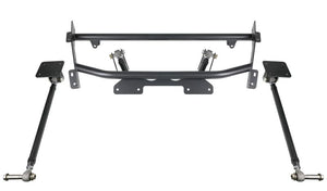 Bolt-On 4-Link for 1968-1974 Nova. Includes R-Joints, adjustable upper bars, fixed lower bars, bolt-on cradle, axle brackets and hardware. Powder coated black. For use with Shockwaves or Coil-Overs, sold separately.