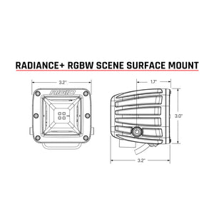 Get ready to light the scene in style. The Radiance+ RGBW Pod Scene Light is built with the same high-grade aluminum alloy housing as our D-Series lights. The RGBW back-lights provide you the ability to toggle between eight available backlight options with the flip of a switch: red, green, blue, light blue, purple, amber, white, or demo mode. Utilizing the latest in LED technology and incorporating a thermally optimized heat sink, the Radiance+ RGBW Pod Scene Light provides up to 100 degrees of horizontal spread for maximum coverage. Scene lighting provides a clear, bright light with minimal amp draw. The Radiance+ RGBW Pod Scene Light is feature-packed, with a black exposed printed circuit board, and forward projecting optics that optimize the light output. The RIGID Radiance+ RGBW Pod Scene delivers a stylish approach to scene lighting.