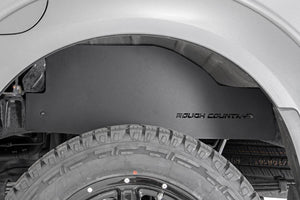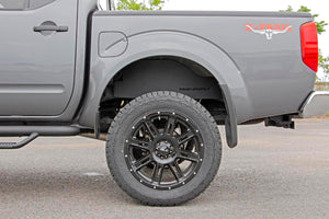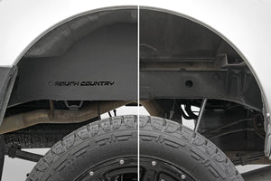 Give your rear wheel well an improved look and increased protection with Rough CountryΓÇÖs Rear Wheel Well Liners for Nissan Frontier. These eye-catching inner fender upgrades help protect sensitive areas from dust, mud, and debris, and can be easily installed in no-time flat! These stylish and practical wheel well liners drastically improve the look of your rear wheel well, hiding any exposed frame or gaps that are apparent - especially after lifting. The durable all-steel construction helps fortify this area, keeping it clear of mud and rocks and other damaging debris. Each Rough Country liner features a corrosion-resistant powder coat for long-lasting durability. Each liner features a laser-cut ΓÇ£Rough CountryΓÇ¥ logo and is designed to mount firmly to the vehicle for quiet operation with no rattling or vibration noise. Rough Country Inner Fender Liners feature a bolt-on installation process with minor drilling for an easy upgrade you can do with common tools in a home garage. Includes Rough CountryΓÇÖs Lifetime Replacement Warranty.