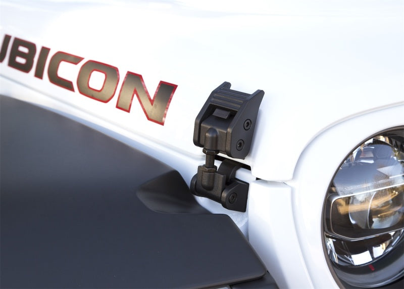 Rugged Ridge Aluminum Hood Catches are one of the simplest upgrades available for your Wrangler JL and Gladiator JT, and what a difference they make! Constructed from high-quality cast aluminum and engineered with an adjustable torsion rod for a precise fit, eliminating the possibility of hood flutter while adding a rugged muscular accent. Available in Black, Textured Black and Silver powder coat finishes, so there?s a Rugged Ridge Aluminum Hood Catch for every taste. Installation is a breeze with simple hand tools making them a must for your Jeep. US Patent D692,290