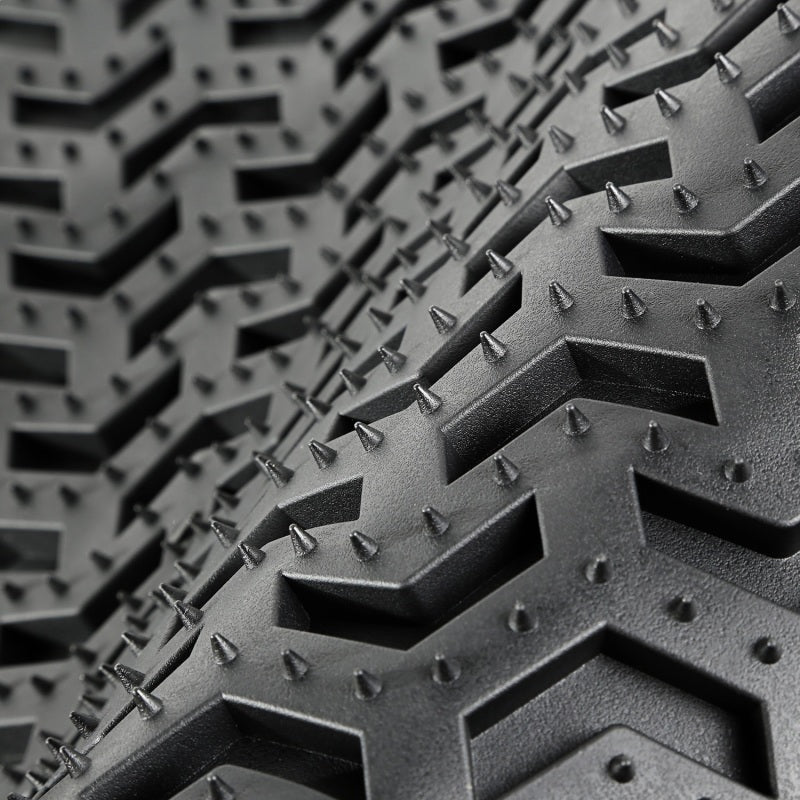 Need an affordable solution to keep the cabin floors of your Jeep looking factory fresh? Try Rugged Ridges All Terrain Floor Liners! Made of a durable OE-quality thermoplastic material that can withstand the rigor of daily abuse, each liner is perfectly contoured to your vehicles floor for precise secure fitment (floor hook attachment where applicable). The raised lip captures all spills, water and debris keeping your interior pristine. Features a chevron shape patented deep tread technology. Patent 8,163,369, D627,285, 2,699,641 Warranty