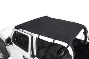 Get your Wrangler JL prepared for warmer weather with the Savannah Brief Top from Rugged Ridge. Constructed from durable Black Diamond sailcloth material, the Savannah Brief Top provides shade for both front and rear seat passengers, making the open air driving experience as enjoyable as an umbrella on the beach. The Savannah top secures to the factory sport bar and roll cage using built-in straps & buckles, delivering a tight, tailored fit that offers a striking appearance and protection from the elements. Includes windshield header channel for a trouble-free installation, so there is nothing more to purchase.