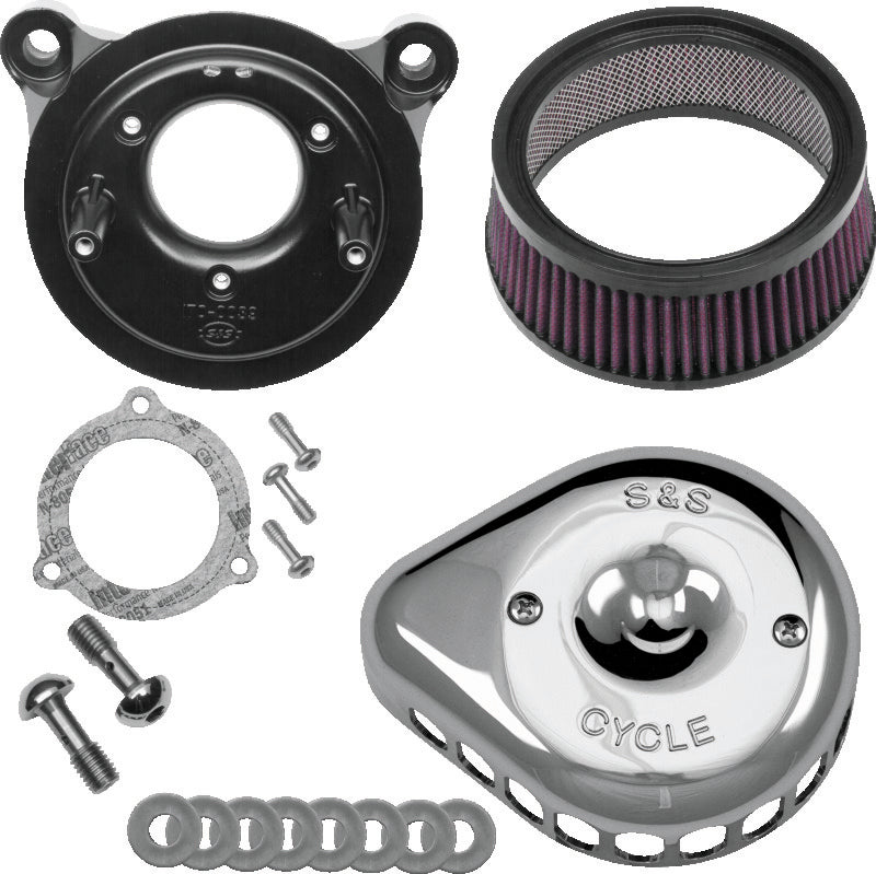 S&S Cycle 08-17 Touring/16-17 Softail Models Stealth Air Cleaner Kit w/ Chrome Mini Teardrop Cover - 170-0437